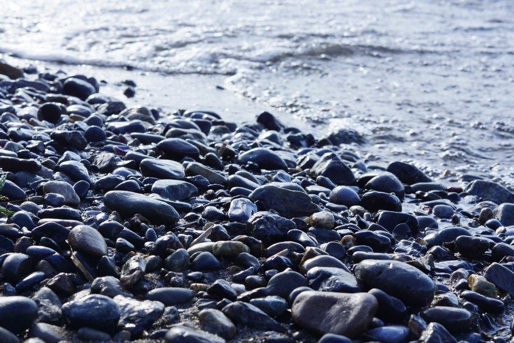 石を琵琶湖に投げながら、