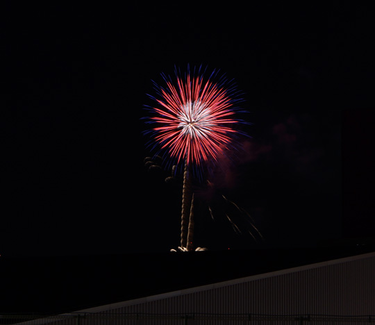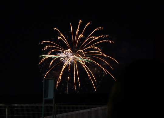 花の形の花火が上がったのを撮ったけど、キャラクター花火もそうだけど、あっち向いてこっち向いてに上がりますよね(笑)