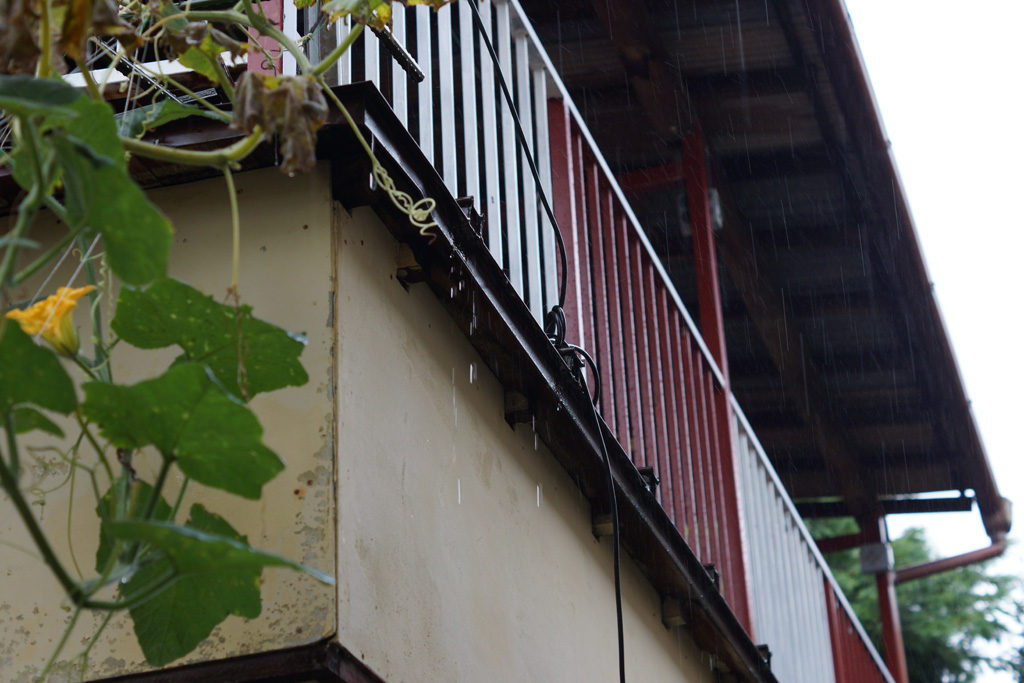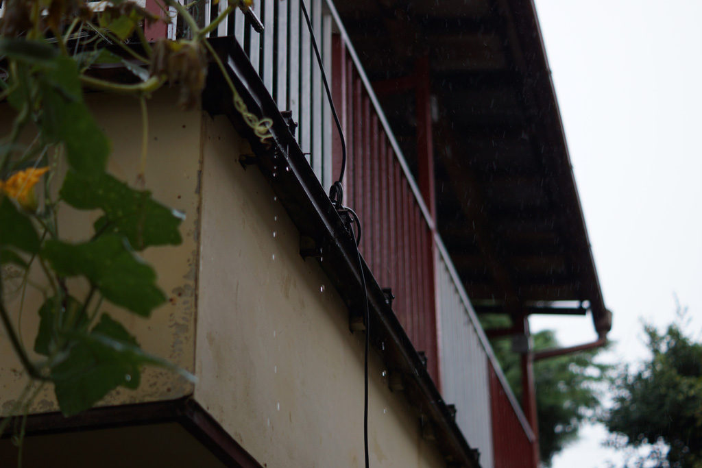 雨なら雨を楽しんじゃおうと思って、写真を撮ろうと…でも、家の前でね。