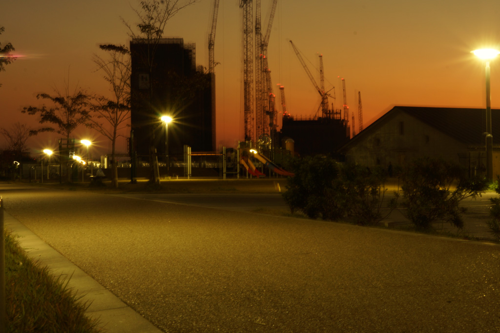 夕焼けがオレンジ色で明るいと感じちゃうけど、昼間と違って暗い中の撮影。