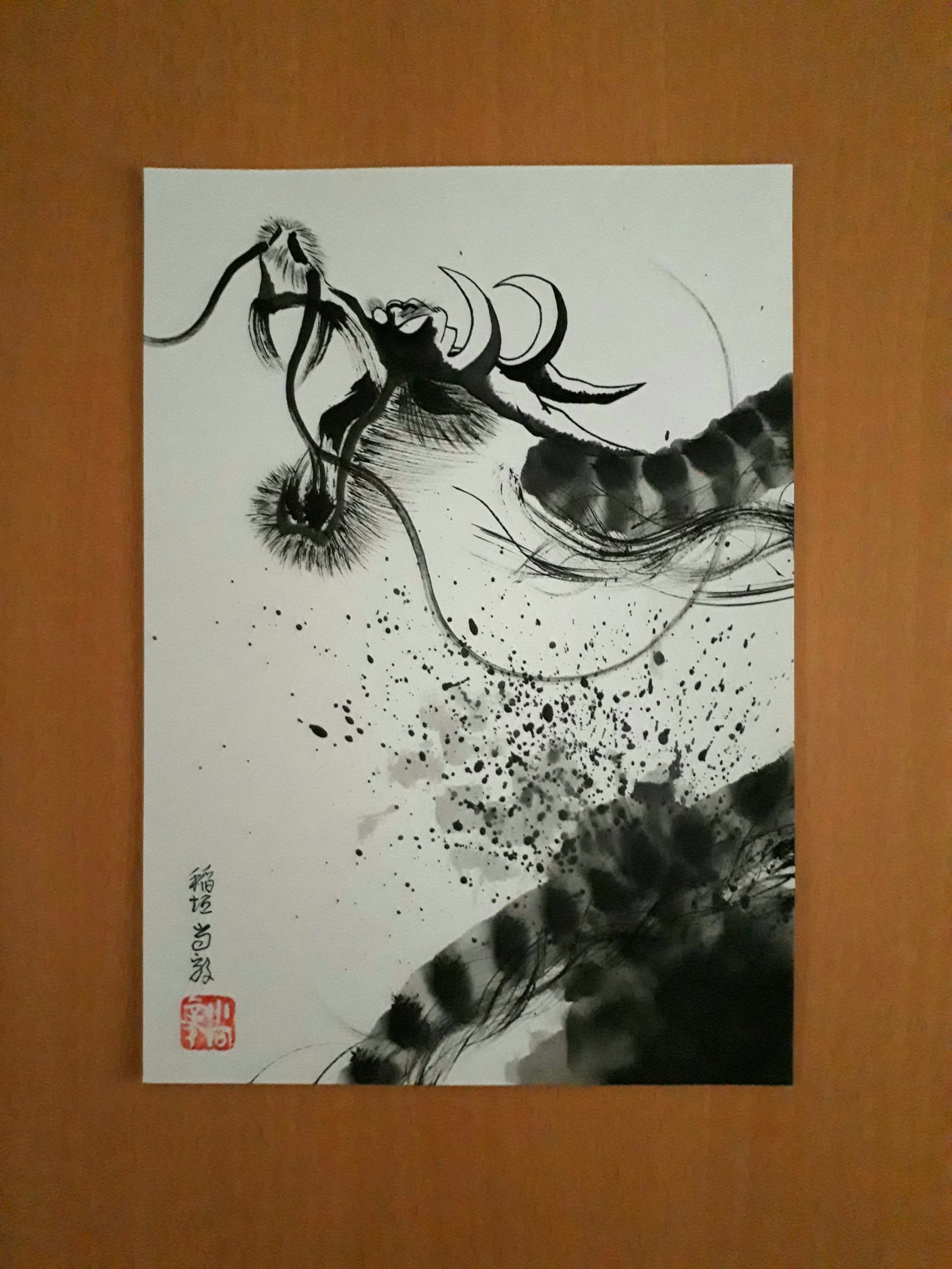 この龍の絵は稲垣尚毅さんによる『100匹の龍』というプロジェクトで、私の為に描いていただいた1枚です。